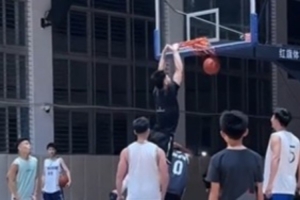 单臂暴扣!杨瀚森假转身+肘开对手 举火烧天单臂暴扣!