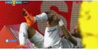 内马尔在一次过人时无接触拉伤,随后痛苦倒地捂脸,队医进场治疗后他起身继续比赛。
