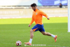 11月21日下午,山东泰山队在武汉体育中心体育场进行赛前踩场训练